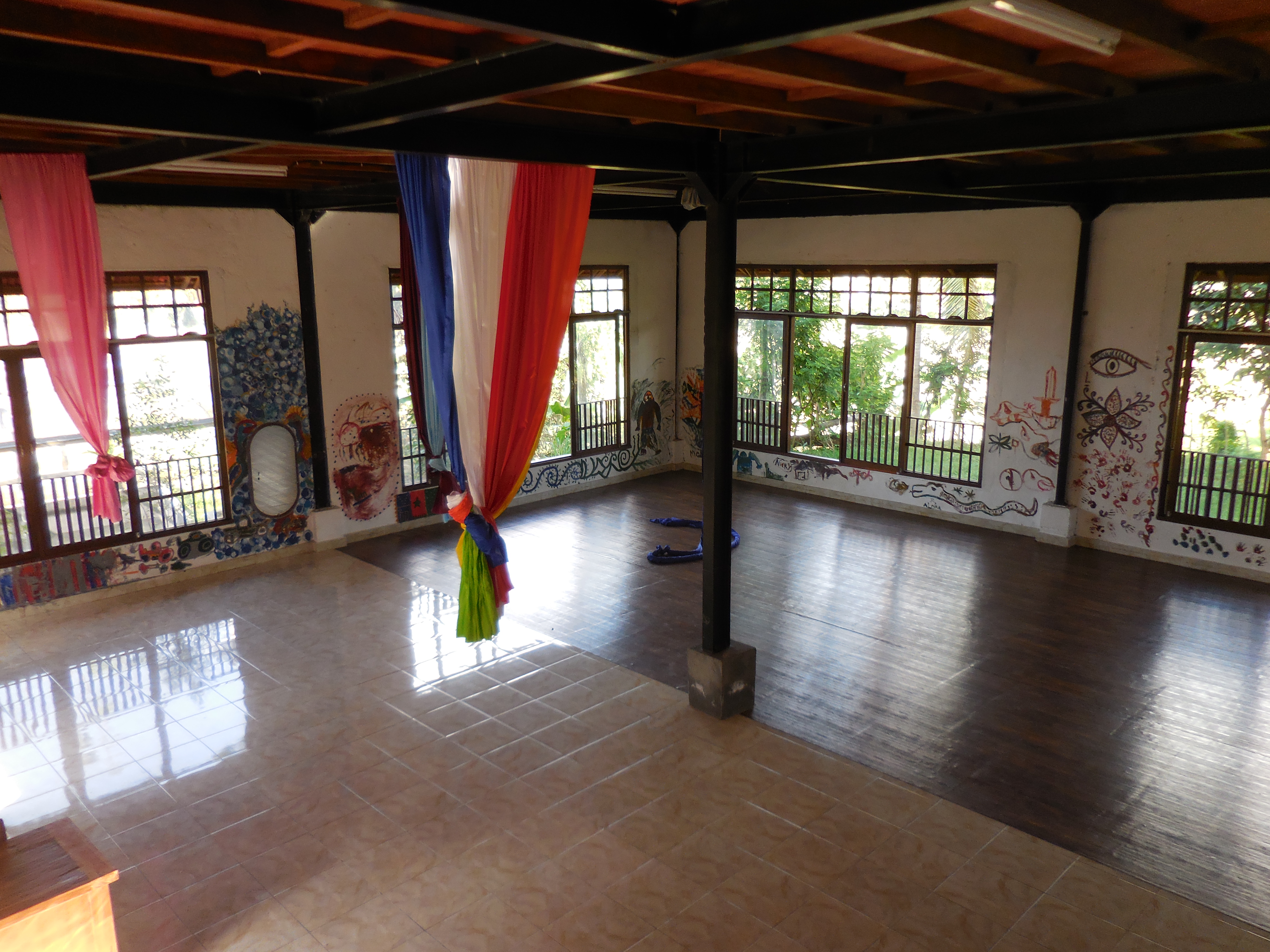 The school is everything I could ever dream it would be. It’s a Buddhist/Neo Humanist/Unschool. It’s totally radical in the best way. The only anticipation I had, is that it is Vegetarian. My kids need a lot of protein or they turn evil. And they really dislike vegetables that are cooked. Hugo won’t eat anything if there is green anywhere touching it. But I said a little prayer to all of my travel angels for the Most Benevolent Outcome. We arrived to pick them up yesterday and a little tug at the back of my momma heart worried I would see tear stained faces. Funny Momma Bear. They were laughing (OK Avani was telling people what to do, so she was in her happy place) and cleaning up the goat pen and feeding goats. It was 4pm and they didn’t want to leave. They happily chattered the whole way home that it was the single best day of their lives. Avani is learning to play guitar, Hugo… well I mentioned the goats didn’t I? They start they day playing in the dirt gardening, then yoga and meditation. Then a bit of studies. Then more time running and playing outside. There are long silk scarves hanging from the ceiling – you know the ones in the acrobat ballet? The kids can climb and swing.